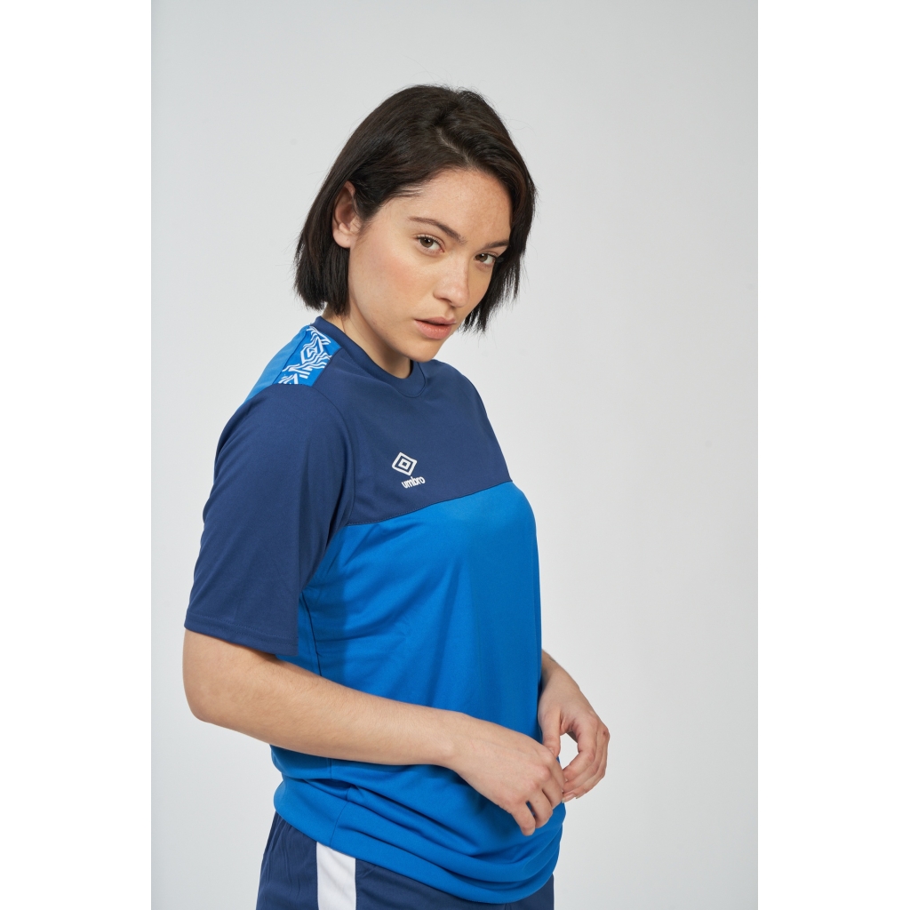 Camiseta manga corta y cuello redondo en canesú a contraste en la parte delantera. Piezas sublimadas en los hombros. Logo de Umbro en alto relieve.