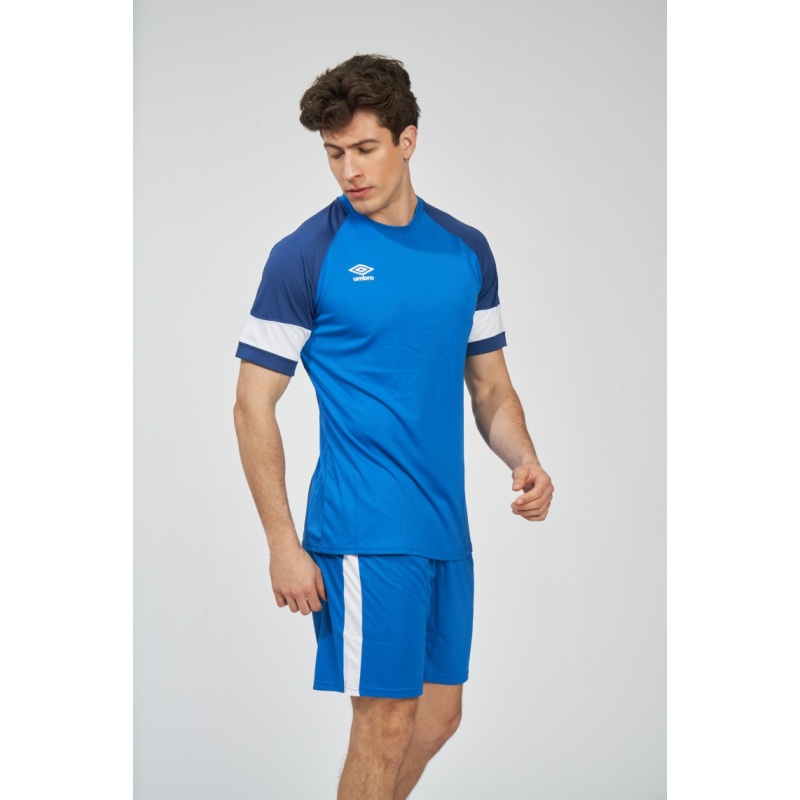 Camiseta de cuello redondo con detalles sublimados en los hombros, realizando figuras con el logotipo de Umbro. Presenta una combinación de colores a modo canesú con un corte delantero en el pecho.